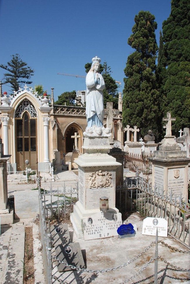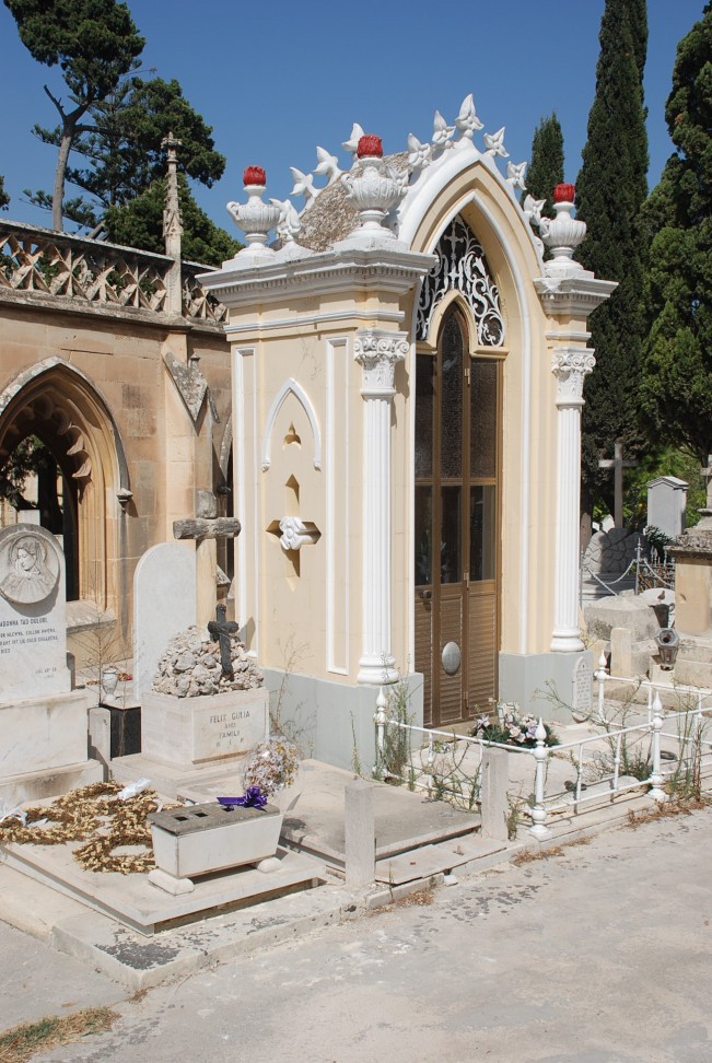 Cmantarz miejski Addolorata w La Valetta, stolicy Malty zaplanowany w kształcie gwiady , z kaplicą w jej centralnym punkcie. Położony na stoku wzgorza przy ukicy Vjal Santa Lucia, pełen białych marmurowych grobowców połączonych z zielenią cyprów tworzy niezapomniany klimat. Zupełnie inaczej niż w naszych regionach uzupełnia sie informacje o nowych lokatorach starych grobowców. Lużno położone tabiczki są ostatnim śladem o obywatelach Valetty, którzy zmienili światy.