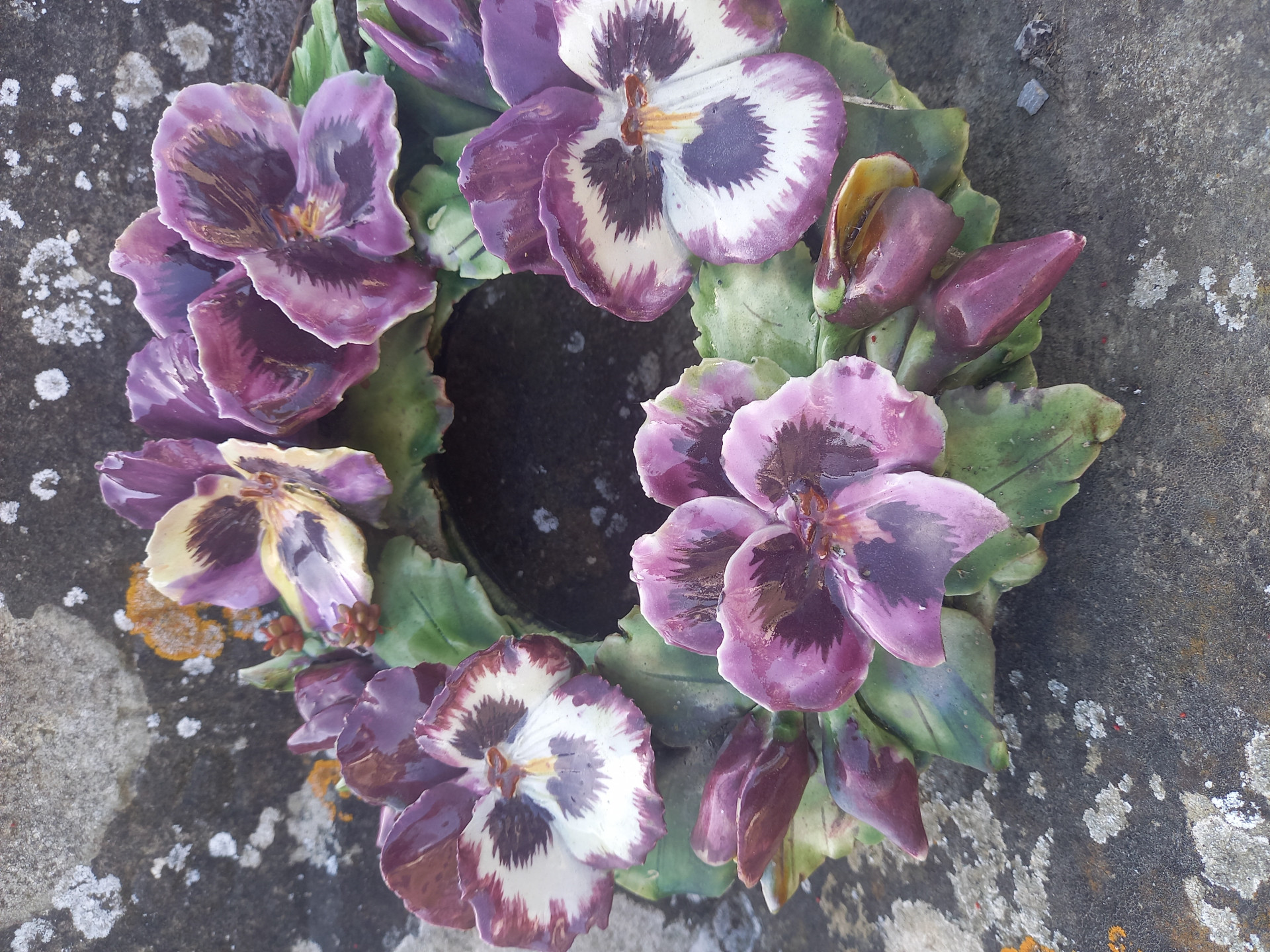 Cmentarz przy starych murach obronnych. Unikalne kwiaty ceramiczne na grobach. Autor zdjęć JSz.