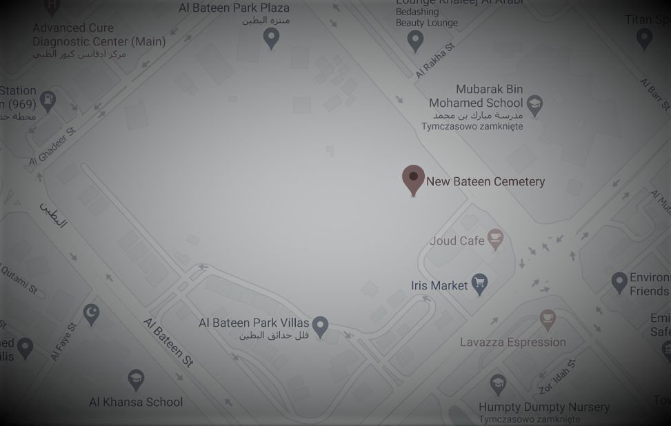 Podstawową funkcją cmentarza muzułmańskiego nie różni się od innych cmentarzy. Najważniejsza cechą cmentarza muzułmańskiego, w przeciwieństwie do innych, jest to, że musi znajdować się poza granicami aglomeracji zamieszkania. Ważne jest również, aby teren był ogrodzony, aby zwierzęta nie mogły wejść na cmentarz. Cmentarz New Bateen , to miejsce spoczynku wielu członków rodziny królewskiej w Abu Zabi, znajduje się w północnej części miasta. Terytorium jest bardzo silnie strzeżone i prawie nikt nie ma dostępu. Ponieważ kraj jest dość młody, wszystkie nagrobki mają nie więcej niż około 60 lat.