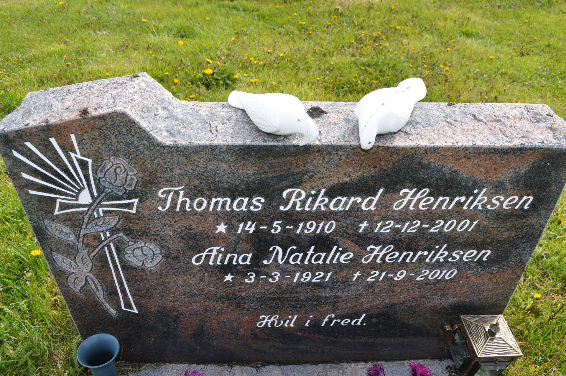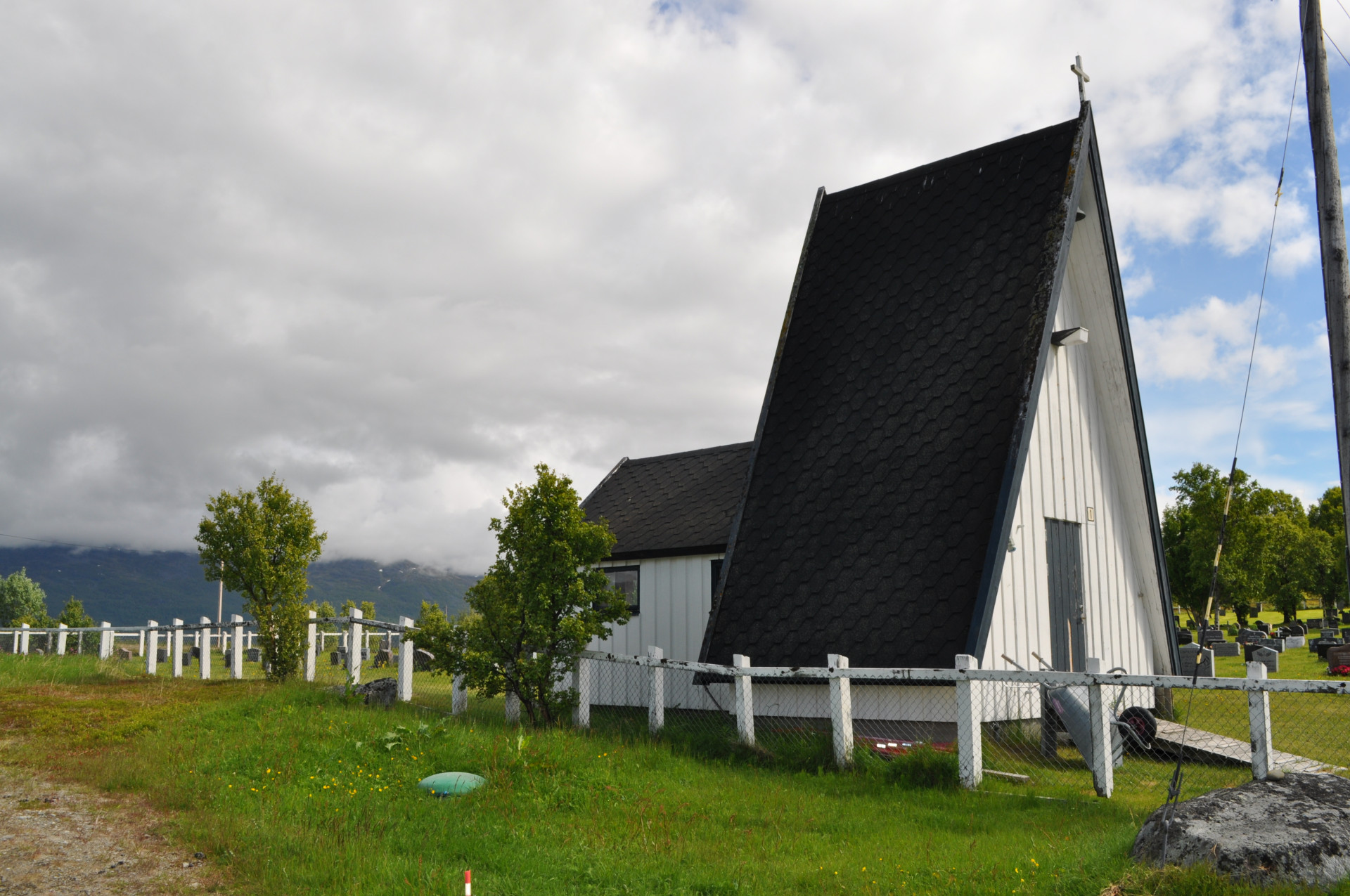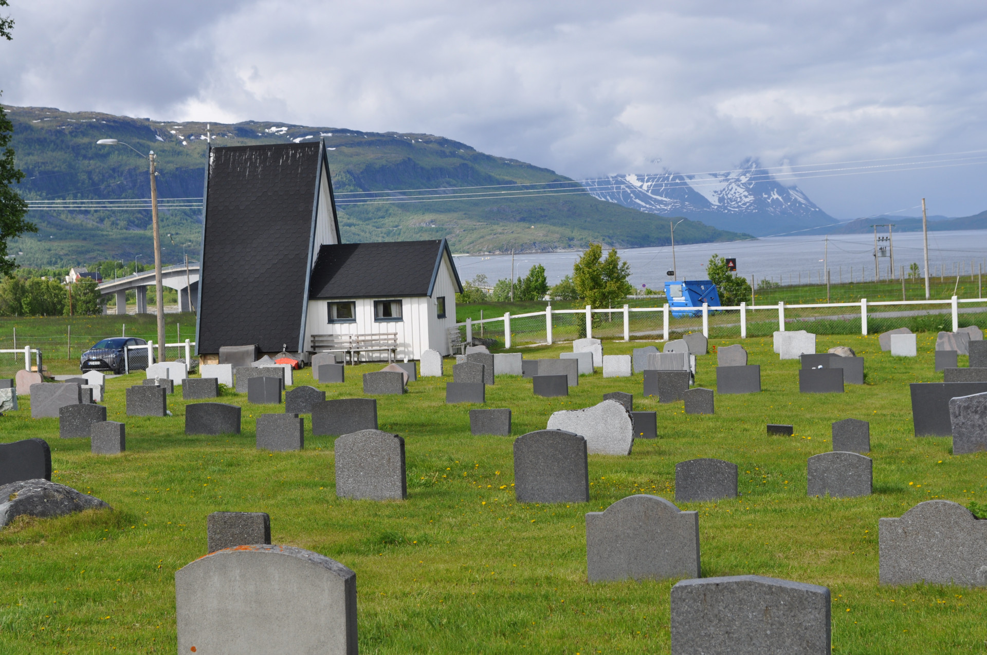 Wiejski cmentarz w miejscowości Nordstraumveien, przy drodze numer 6 w kierunku North Cup. Typowa stylistyka skandynawska, skromne groby, poszanowanie zmarłego i natury. Charakterystyczne dla regionu ozdoby, statuetki i reliefy gołębi. Autor zdjęć Jan Sz. Czerwiec 2019r.